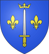Blasonnement : D'azur à une épée d'argent garnie d'or mise en pal, surmontée d'une couronne et accostée de deux fleurs de lys le tout d'or.